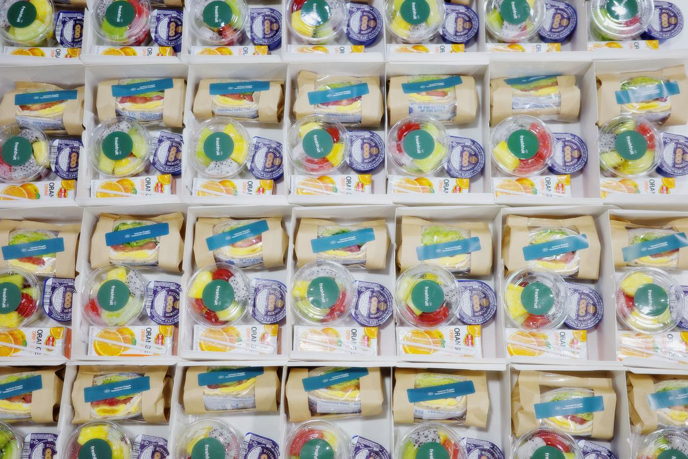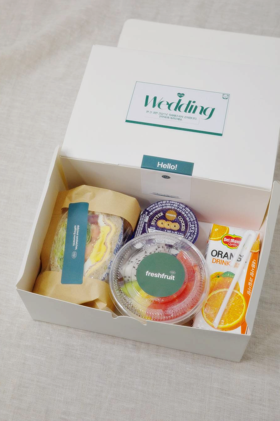 - "베이직샌드 1p + 과일컵 + 버터쿠키 + 델몬트 팩쥬스" 구성에 물티슈 포함 32 ea 준비했습니다.