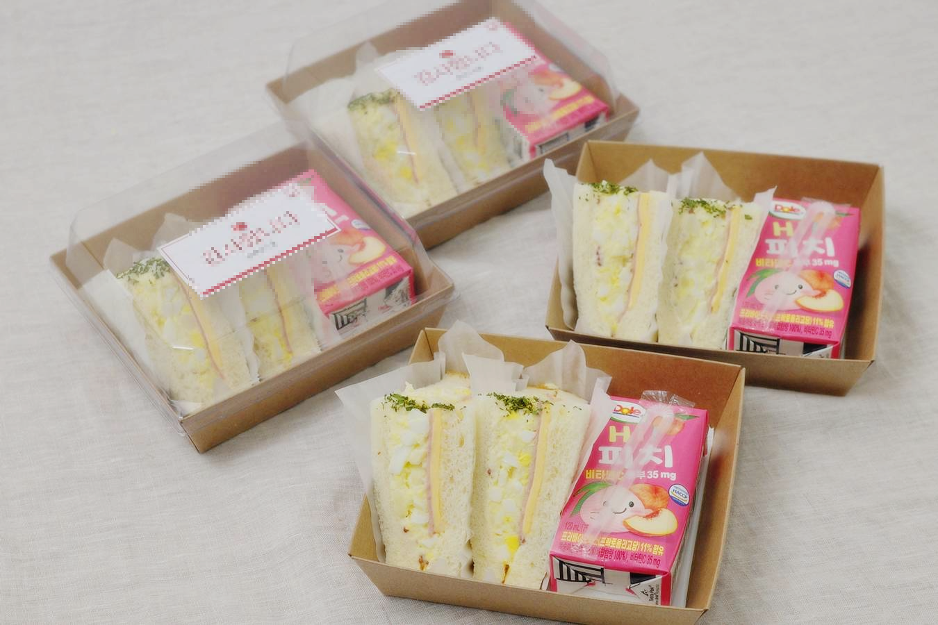 - "모닝샌드 2p + 돌(Dole) 과즙쥬스" 구성에 물티슈 포함 26 ea 준비했습니다.
