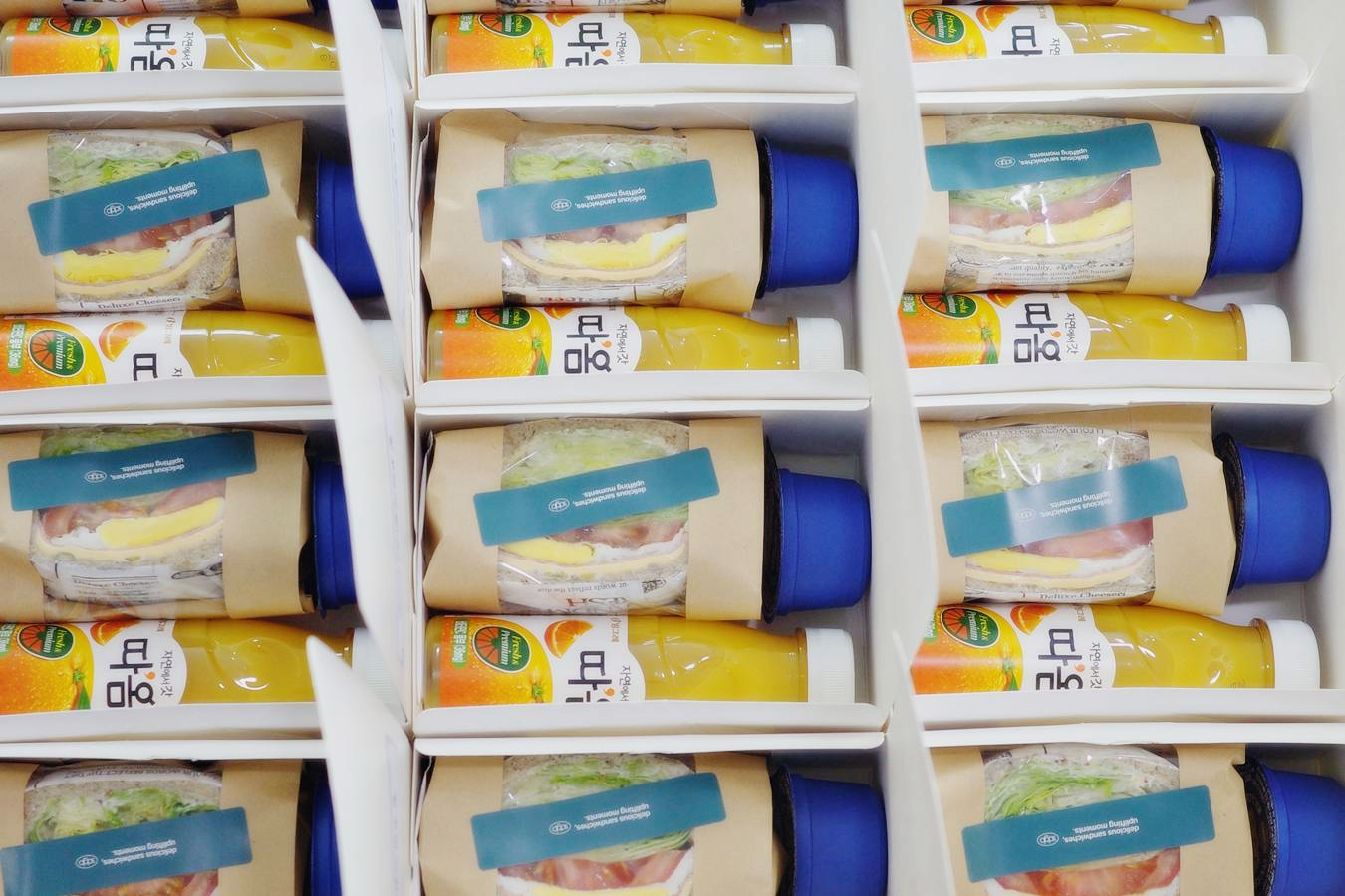 - "베이직샌드 1p + 버터쿠키 + 따옴 과즙쥬스"를 물티슈와 함께 한 상자에 준비했습니다✌️