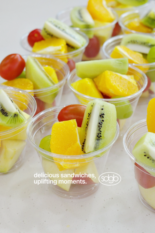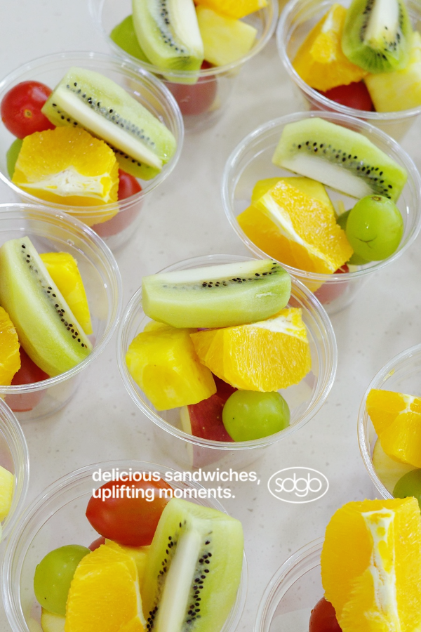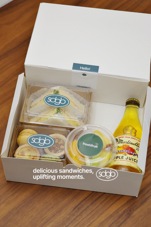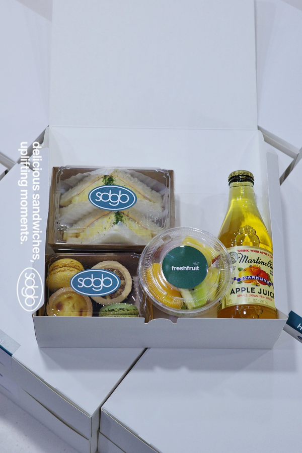 - "모닝샌드 2p + 과일컵 + 디저트박스 + 스파클링 애플쥬스"구성을 16 ea 준비했습니다.