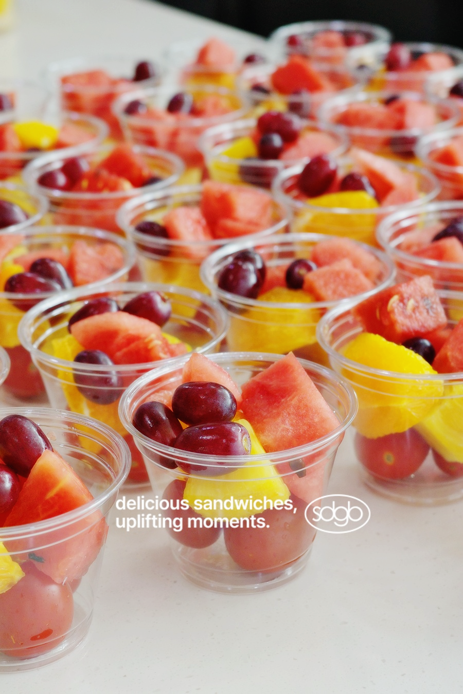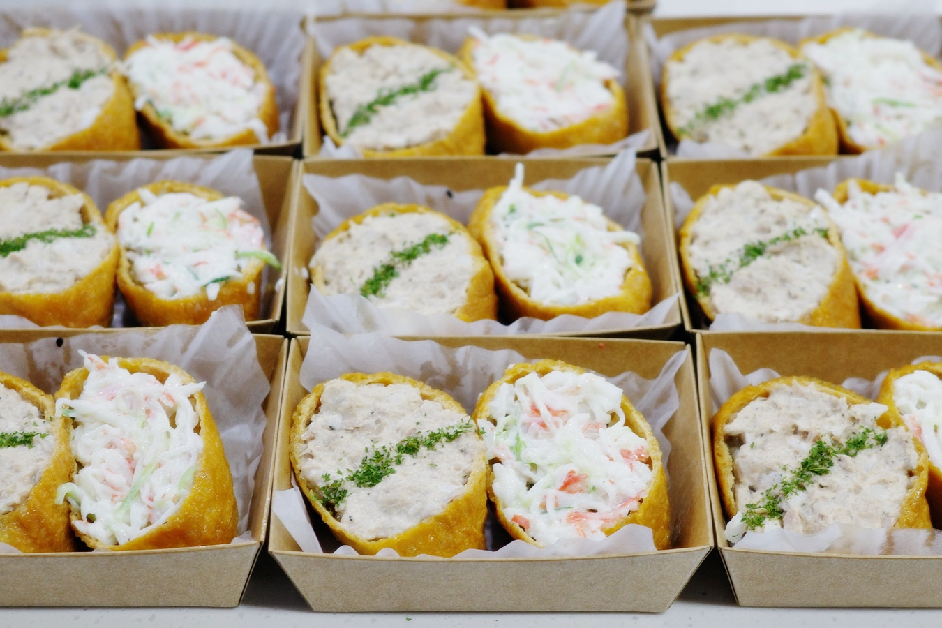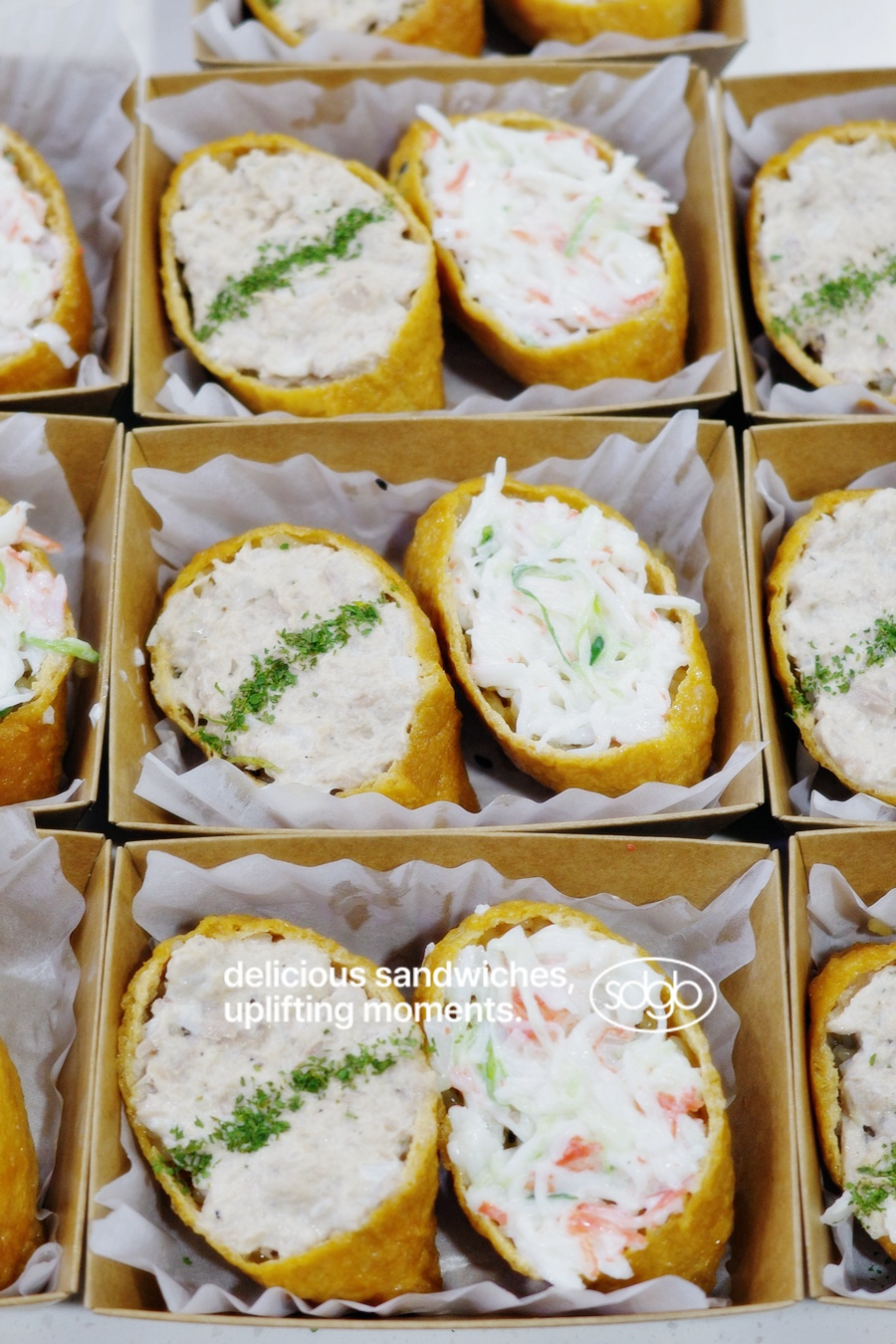 - "베이직샌드 1p + 토핑유부(: 게살유부, 콘마요) 2p + 과일컵 + 버터쿠키" 30ea 준비했습니다.